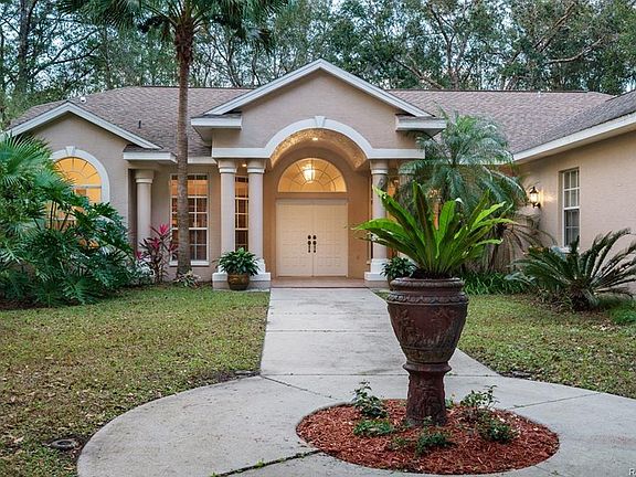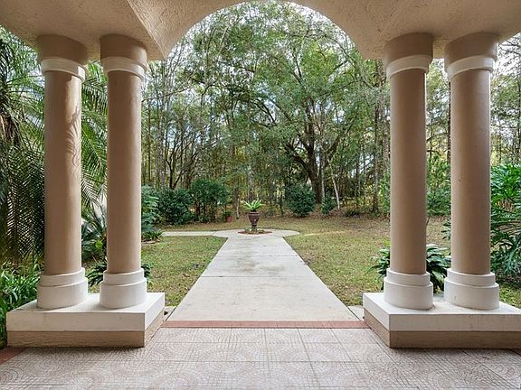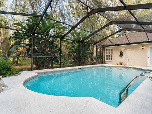 5 AC custom built. 4 bedroom + office, 2 bath, 3 car garage & 300 sf workshop. 2.5-acre lot with 2.5-acre lot for buyer's choice to build, sell, or invest or enjoy the live oaks & citrus trees. New roof installed in 2013 & a 13-month home warranty included. Landscaped entry through double doors to customized office with Oak Bookcases & desk, w/views of the freshly resurfaced & updated pool & large screened lanai. Dining & Living rooms are separated by open kitchen & breakfast nook. Master Suite w/double closets & double vanity, garden tub & separate shower. Family room w/wood burning, stone fireplace w/custom oak mantle & another 3 bedrooms & bath/pool bath.