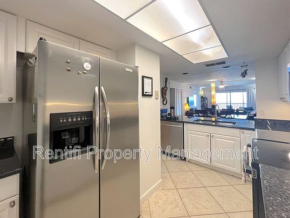 Top-floor, furnished 2-bedroom, 2-bath condo in a downtown Fort Myers high-rise with sweeping views of the Caloosahatchee River and bridges. Enjoy golden sunsets from your screened lanai, with peace of mind from hurricane-impact windows and doors. Inside, the home is move-in ready with a queen bed in the primary suite and a twin bed in the guest room. Community amenities include an elevator, saltwater pool, fitness center, and community room. A private boat dock accommodates boats up to 25 feet. Water is included in the rent. Live steps from the River District's dining, shops, and eventsthen come home to quiet, top-floor comfort and unbeatable sunsets.