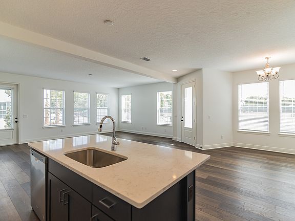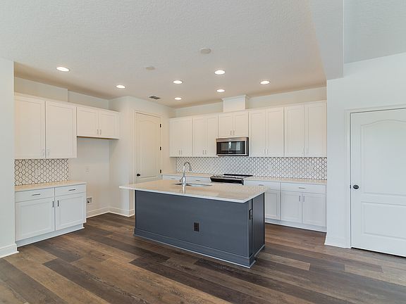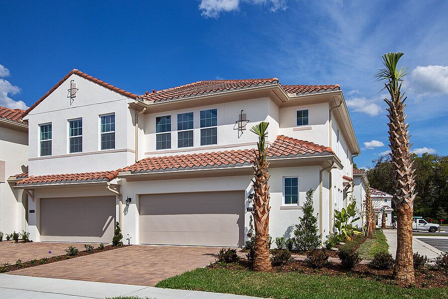 This Dario end-unit offers 3 large bedrooms, 2.5 baths and an inviting open floorplan that's great for entertaining. Features a spacious great room floor plan with 9.5' ceilings, wood plank vinyl flooring throughout, 8' doors on first floor, gourmet kitchen with over-sized center island, quartz countertops, 42" designer white shaker cabinets, white tile backsplash, 5 ¼" baseboards and much more. The master retreat boasts an oversized walk-in closet, dual vanities in bath with a huge walk-in frameless glass shower with rain shower head.. Residents will enjoy a variety of amenities in the neighborhood including an 18 hole, 72 par golf course, a new community pool & clubhouse with fitness center, restaurant, and pro shop. HOA fee all exterior maintenance and a social membership to the golf course. 72 town home sites all with Spanish Colonial architecture, tile roofs and brick paver driveways. Easy access to I-4, 429, shopping, dining and recreation. Located right across the street from Wekiva Springs State