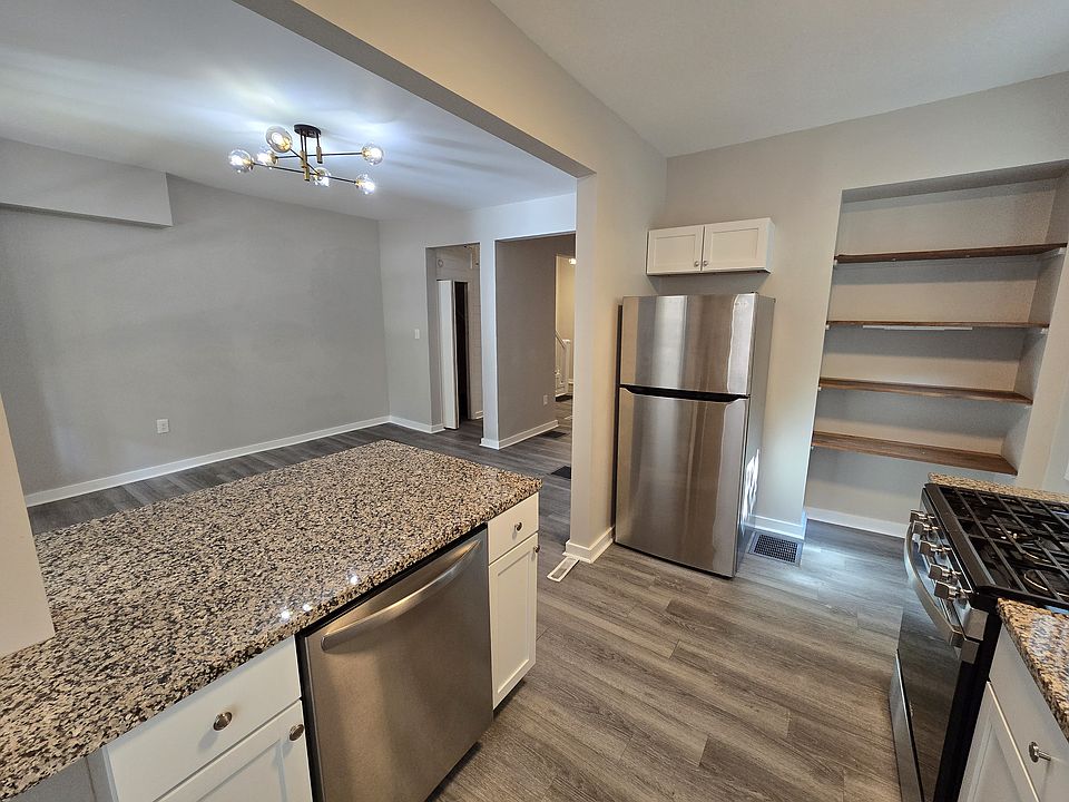 Open floor planShiplap accentsAmple natural lightLuxury plank flooringGranite countertopsStainless steel appliances
