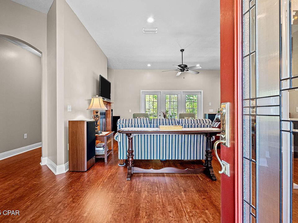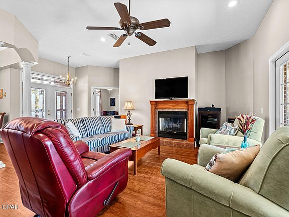 A new HVAC system was installed in November 2024 with a transferable warranty. The roof was replaced in 2019, and energy-efficient, hurricane-rated vinyl windows were installed throughout the home the same year. Neutral wall colors provide a timeless look, while patio ceiling fans, added in 2020, enhance outdoor comfort. The home features a spacious, side-load double-car garage, complemented by an extra-large driveway for added convenience.