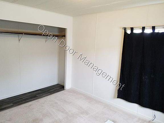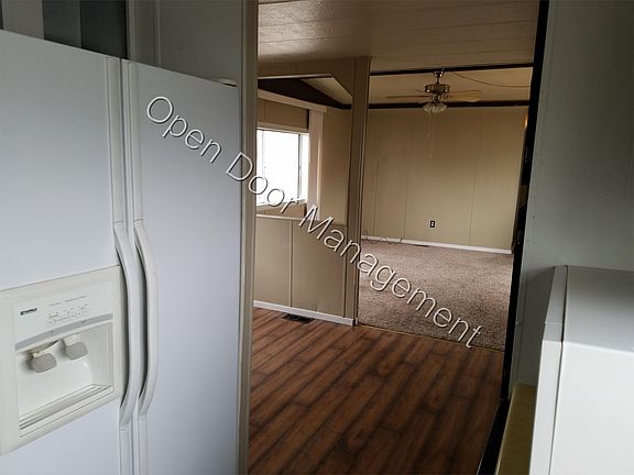Open Door Management Co Spacious 3 bedroom 1.5 bath mobile home. This property has a washer and dryer hook up. Wood flooring in kitchen and carpet in living room. Owner pays water. Off street parking and a small shed on the property. Pet allowed with additional rent and additional security deposit.