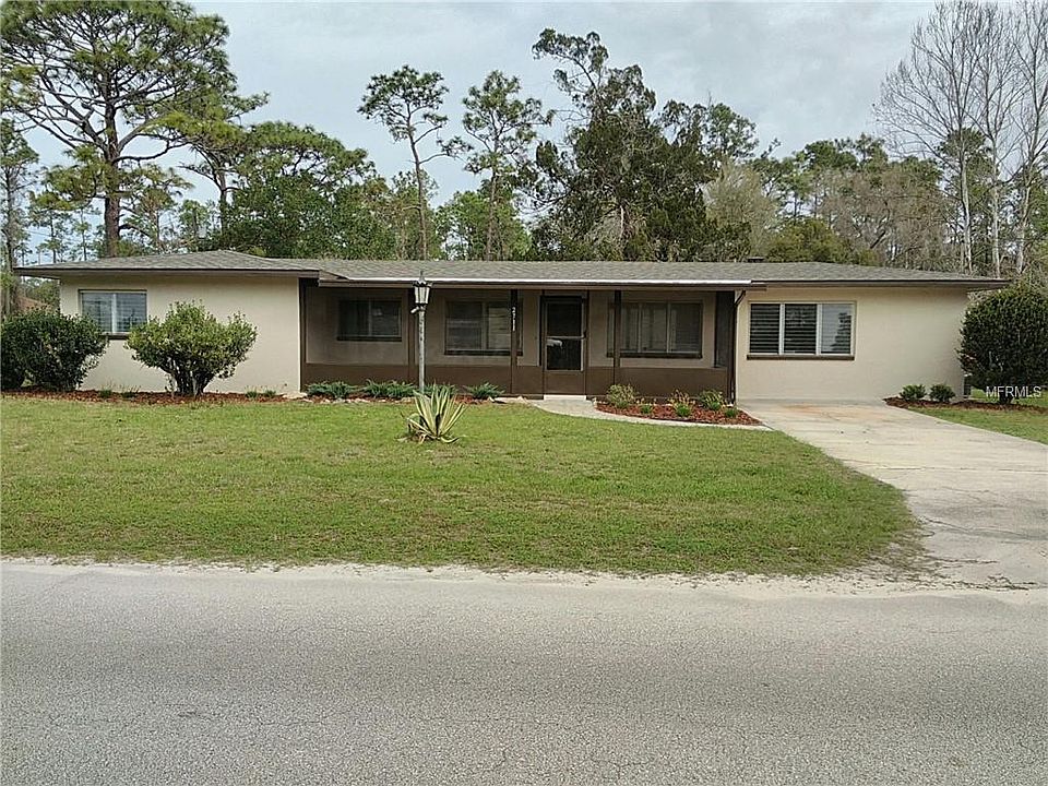 BRAND NEW ROOF!! HURRY...WON'T LAST LONG! A slice of country living, close to all that DeLand has to offer, and only minutes to the beach!! BLOCK & STUCCO · MOVE IN READY · New paint inside and out · New flooring throughout · Refreshed kitchen cabinets & countertops · and the list goes on! Start at the 31x07 screened front entry, with solid wood front door, and end at the stunning 31x08 covered wooden deck that's attached to a spacious concrete patio The huge family room has a statement piece, floor to ceiling, brick wood burning fireplace with full length mantle. Sparkling CLEAN windows with interior storm glass, making all rooms very light and bright. All this sits on a 1/4+ acre corner lot!! Well & Septic. VERY EASY SHOW! ATTENTION AGENTS: Please read REALTOR REMARKS for instructions on submitting your offer.