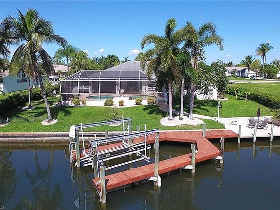 Sunrise like you're on vacation, Live your Best Life Ever in this Gulf Access family home overlooking the wide canal and basin. With a great floor plan, 3 bed/ 2 bath and a den in almost 2100 sf LA there is plenty of natural light coming in the large windows. The home features vaulted ceilings, tile and wood throughout and stainless steel appliances in the kitchen. Enjoy a fresh mango just outside the large lanai and solar heated pool. The private dock and lift is ready for your boat and will give you the freedom to enjoy all that our local waters provide. The home is centrally located and is a quick trip to everywhere. Central utilities are in place and paid in full. Elevation is such that flood insurance is not required. This home is a value priced under 400k and is a true opportunity. Schedule your appointment today!