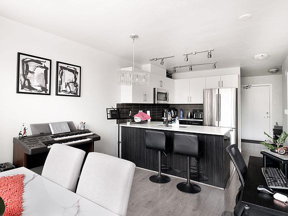 SKYWAY TOWERS in the popular Vancouver Collingwood neighbourhood! Southwest facing 1 bedroom + den + flex overlooking Norquay Park. Functional 602sqft layout with spacious living with den space to set up a home office and a flex for additional storage. Featuring laminate floors, quartz countertops, stainless steel appliances, large windows, and insuite laundry. 1 Parking included for this home! Conveniently accessible to bus stops in your front door and a short walk to 29th Skytrain Station. Close to T&T Supermarket, Shoppers Drug Mart, and plenty of East Vancouver Restaurants nearby. Open House May 27 Saturday from 2-4pm.