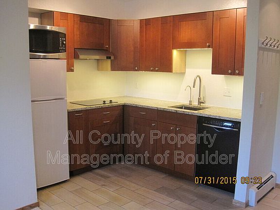 Available July 14th! Rental License #: RHL2015-00224 This stylish second-floor one-bedroom condo combines modern minimalism with a distinctive cubist exterior. Conveniently located near downtown Boulder, CU Boulder, and the 29th Street Mall, it offers a comfortable and low-maintenance lifestyle in a smoke-free community. Features & Highlights: Utilities Included: Heat, hot water, water, trash, and recycling. Tenant only pays for electricity. Modern Kitchen: Granite countertops, tiled flooring, unique cabinetry with pull-outs and revolving shelving, glass-top electric 2-burner stove, convection oven/microwave, dishwasher, and refrigerator. Bathroom: Full bath with tub/shower combination. Living Area: Wood-burning fireplace, portable AC unit, and access to a north-facing balcony. Parking: One assigned, uncovered off-street parking space. Laundry: Shared/common area laundry (no in-unit washer/dryer). Additional Info: No pets No smoking (entire community is smoke-free) No external storage available Enjoy easy access to public transportation and all that Boulder has to offer in this thoughtfully designed and efficiently laid-out condo.