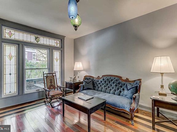 Carefully restored, creatively renovated, this three bed charmer brings the personality... hardwoods throughout; the columns, trim, millwork and vintage fixtures all punctuate this modern interpretation of a 1920 classic. On the main floor, a generous foyer opens up into a comfortable living room, framed by columns, atop a one-of-a-kind, flooring design of exotic wood & oak, sun filled through stained glass.Through the widened pass-through, an open dining area and updated kitchen.. exposed brick accenting the dark rich wood grains in the solid walnut countertops. Upstairs, three bedrooms. The front two rooms enjoys the added light from the brilliantly vaulted exposure of the house's traditionally un-used front attic windows... a truly unique signature of the home. Below, a recently refreshed, unfinished basement.. bright and spacious storage with laundry and access to the rear yard and the alley.Three blocks from R House, several blocks to the BMA, a brisk commute to JHU, easy access to 83.. there doesn't seem to be downside to this one.
