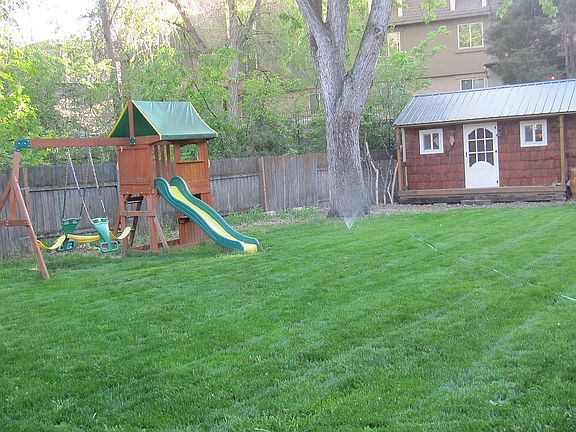 Spacious backyard with covered patio Backyard shed for storage or workshop Master bedroom with bath Three bedrooms upstairs; one downstairs Full kitchen has ceramic tile and dining area Formal living room Formal dining room Bonus food storage room or wine cellar Laundry room New windows by Pella and Andersen Lower level apartment walk out to patio Oak hardwood floors New solid wood doors throughout house Natural spring water serves neighborhood Beautiful and established neighborhood Good schools - Independent School District of Boise City Close proximity to trails Close proximity to downtown