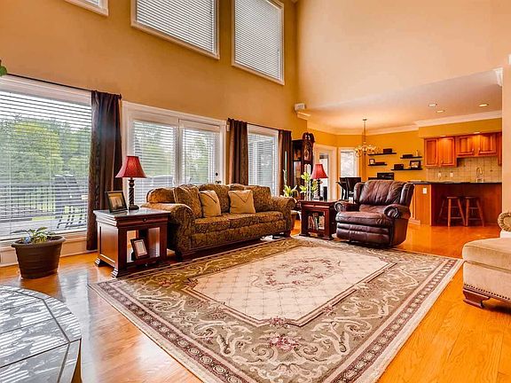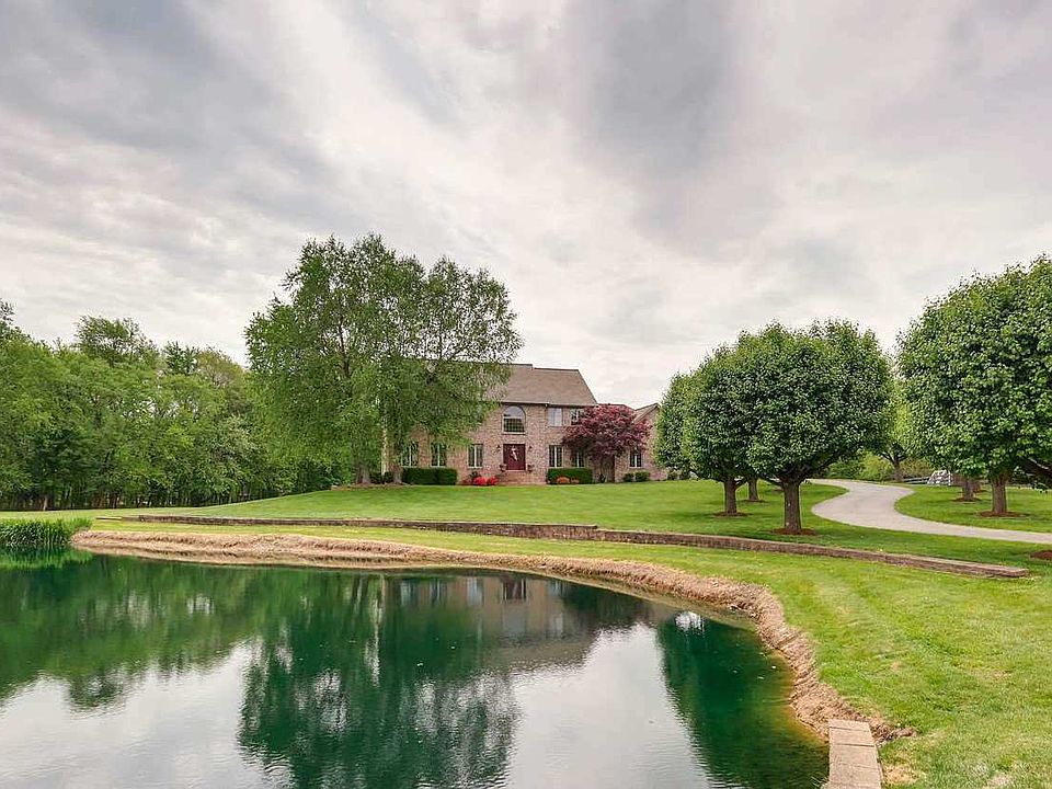 Tucked away down a tree-lined driveway, you will find over 5600 square feet of finished living area in this spectacular waterfront, 5-bedroom, 4.5-bath home on a picturesque setting with 4.765 acres of land. The home offers a 2-story foyer and great room, beautiful finishes, double crown molding, 2 fireplaces, hardwood floors, a fully-finished walk-out basement, and so much more. The eat-in kitchen boasts granite counters, an island with breakfast bar, and a separate formal dining room for entertaining. The main-level master retreat features a gorgeous full bath with a double vanity, glassed tile shower, dressing vanity, large storage cabinets, and a hot tub room off the bath. An office, laundry room, and half bath complete the main level. Upstairs you will find four large bedrooms and two full baths. The lower level of the home offers a family room with bar, a theater room, a rec room, and a game room, along with a full bath. Outside you will fall in love with the balcony deck off the great room, covered patio off the walk-out basement, pergola with rock fountain, meticulously-kept landscaping, extra parking area, tree-lined acreage, and the breathtaking views surrounding the home and lake. This home is sure to impress!