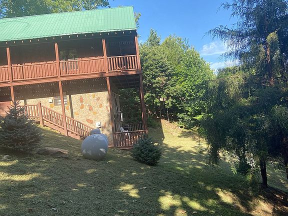 Restricted Gated Community!!! "A VIEW FOR ALL SEASONS" -- GREAT MOUNTAIN VIEWS from all three decks, SWIMMING POOL ACCESS, POOL TABLE, and very private with ALL THE EXTRAS! "A VIEW FOR ALL SEASONS" is a gorgeous log style cabin with great views in every direction. This luxurious, home-style built cabin has a King-size bed in the master bedroom on the main level, a Queen-size bed in the upstairs bedroom AND a sleeper-sofa in the den. Make your own great family memories as you cooking up special family meals in the fully-equipped kitchen, or maybe you will prefer to grill up some juicy sizzling steaks on the gas grill outside on your private back deck. There is a stereo with CD-player and THREE televisions (one in the den with satellite service and a DVD player and one in the master bedroom and one in the upstairs loft game room. Relax in your big, bubbling hot tub on your own private back deck and soak your troubles away, or maybe you will choose the indoor Jacuzzi whirlpool tub instead. Stretch out and relax in front of the warm GAS fireplace in the den and feel your stress melt away. The kids will LOVE the fun pool table in the upstairs loft area, as well as the Wii game System with 5 games and the Playstation 2 with 3 games available. The adults will Love sitting outside on the private balcony in the mornings drinking a cup of hot coffee (and drinking IN all those views) or in the evenings sipping on a cool beverage and enjoying the MOUNTAIN views. A truly amazing cabin sitting HIGH on top of a mountain in a gated, very private log home community and overlooking all the splendor of the Great Smoky Mountains.