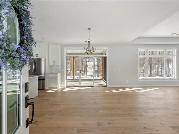 Stunning one-level new construction home nestled next to Pillsbury State Forest on a picturesque 2+ wooded acre lot. This beautifully designed modern home offers serene privacy and high-end comforts, featuring radiant in-floor heat and full A/C, European white oak flooring, and Marvin casement windows for timeless elegance and energy efficiency. Designed for both style and function, the home boasts LP SmartSide siding, 9 ft ceilings, and insulated interior walls for noise reduction and enhanced heating and cooling efficiency. The spacious 3-car heated garage includes a floor drain and attic storage, while an on-demand hot water heater/boiler combo ensures efficiency and convenience. The heart of the home is its open-concept living space, highlighted by a Kozy Heat gas fireplace, custom soft-close cabinetry, and level III granite countertops throughout. The walk-in pantry, oversized washer and dryer, and Bayer Built solid core doors add to the home’s thoughtful design. Relax in the large tiled shower with a custom glass door or unwind in the Kohler soaker tub after a day of outdoor adventure. Outdoor living is just as impressive with a 240 ft² screened-in porch, perfect for al fresco evenings. The exterior hot/cold hose bib adds convenience for all seasons. Located near Green Bass Lake and an abundance of activities, including horseback riding, hiking, and snowmobile trails, this home is a nature lover’s dream. Experience the best of modern living in a peaceful, scenic setting—schedule your private showing today!
