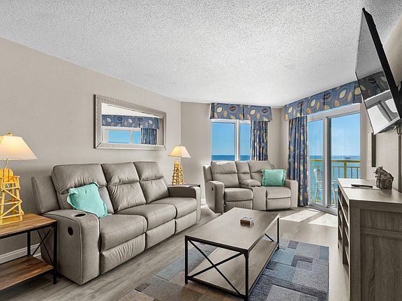 Wake up to breathtaking views of the Atlantic in this beautifully updated oceanfront condo located at the Bay Watch Resort center tower! This spacious 3-bedroom, 3-bathroom retreat features brand new flooring throughout and stylish new living room furniture that perfectly complements the coastal vibe. The open-concept living and dining area flows seamlessly to a private balcony overlooking the beach – ideal for relaxing mornings and sunset evenings. Each bedroom offers comfort and privacy, including a luxurious primary suite with ocean views and a spa-like ensuite bath. Perfect as a primary residence, vacation getaway, or investment property, this move-in ready condo combines modern updates with unbeatable oceanfront living. Among some of the amenities that are available to owners and guests is an expansive oceanfront pool deck with outdoor pools, hot tubs, and a lazy river. They also include an indoor lazy river, pools, game room, exercise room, souvenir store, restaurants and lounges. Bay Watch is conveniently located to great restaurants, Barefoot Landing, golf courses, shopping, entertainment and all that the Grand Strand offers.