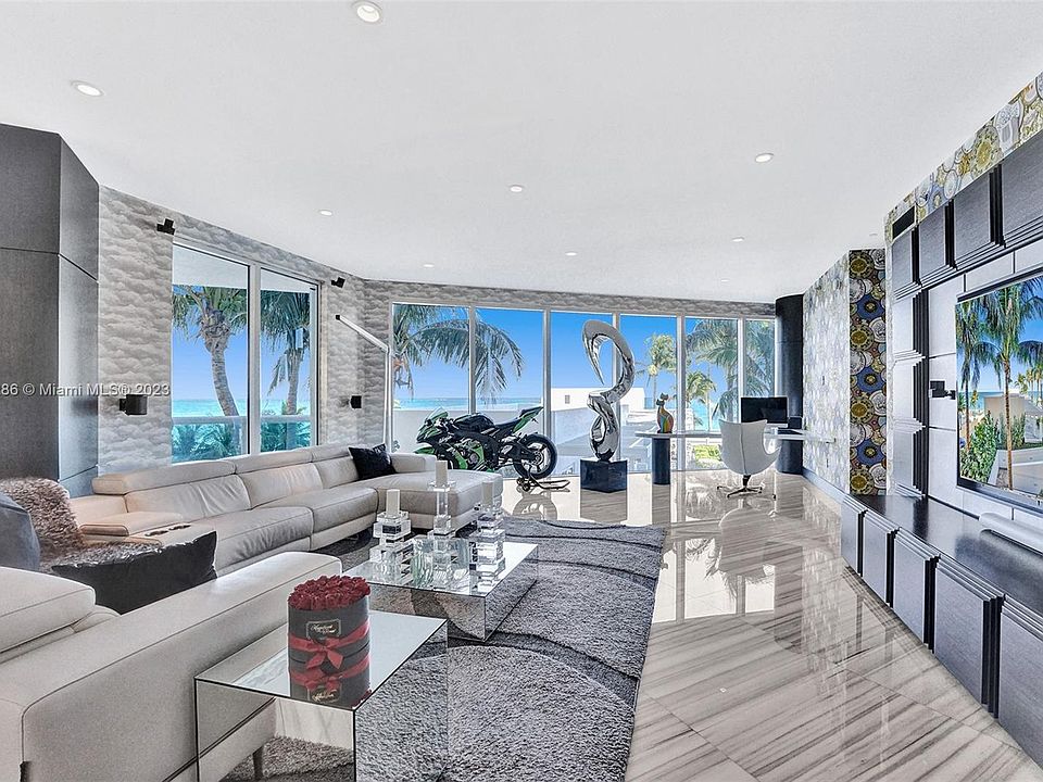 Wow! Jewel of Luxurious Trump Hollywood! Beach Lanai w/Private Deck Overlooks the Beach w/Jacuzzi. Over a Million$ in renovations. private elevator foyer to this 3952 SF 3B 3.5Ba+Media Rm & Laundry Rm,2 STORY SHOWPLACE BEING SOLD TURNKEY! Ocean Views! Contemporary Masterpiece! Finest Finishes& custom Furniture: Versace, Cavalli, Chanel & Alligator Couch, Smart system, 48" White Marble Flrs, Custom Doors, Lutron+Murano Italian Glass Lighting, Theatre/Nightclub w/Laser Lights, Smoke Machine&Sound System! Fabulous Art! Nothing Original Remains! Walk Out to Pool! Special Rare Residence w/All The Privacy of a House & Amenities of a Condo - Unsurpassed Amenities: Breakfast Rm,Wine+Cigar Lounges,Fitness Center,Tennis,Spa,Massage Rm,Theater,Party Rm,Pool+Beach Service,24h Security,Valet & more!