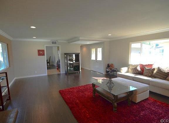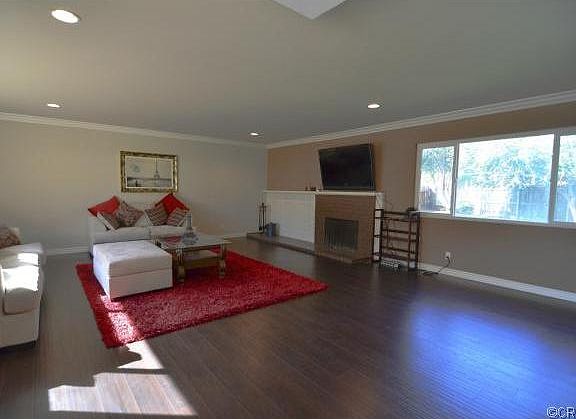 3BR 2 BA remodeled La Verne cul-de-sac home. Newer updated kitchen with granite counter tops, newer cabinets, newer paint, tile flooring, stove and dishwasher. Large living room with a fireplace. Newer dual pane windows through out, and new central air conditioning. Upgraded bathrooms with newer tile flooring and custom tiled showers. Crown Molding and newer doors throughout. Recessed lighting, Open floorplan, beautiful high grade laminate flooring and Newer carpet in bedrooms. Newer Paint interior/exterior. Front and rear landscaping with sprinklers in front and back. Shows like a model home. This one will go fast!!! Beautifully maintained home!