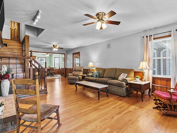 Country living at its best in this well maintained home on 6.29 acres with beautiful pond and lots of road frontage. Home features 3,009 sf with large fireplace, gas logs, open to large eat in kitchen with lots of cabinets, granite countertops and tile back splash. Home has separate dining room for entertaining. Hardwoods throughout family room, bedrooms, dining and foyer. First floor master suite includes garden tub, separate shower and 2 walk-in closets. Relax in the lovely sunroom, screened in porch or large deck. Home has in-law suite with separate entrance, also with access to the house, featuring kitchen, living area, bedroom and full bath. 2 car garage with half bath and unfinished walk-in storage. Other features of this property include: 36 x 45 workshop with 3-phase wiring. 30 x 30 building surrounded by 14' shelters. Lots of storage and possibilities for work, hobbies, or entertaining.