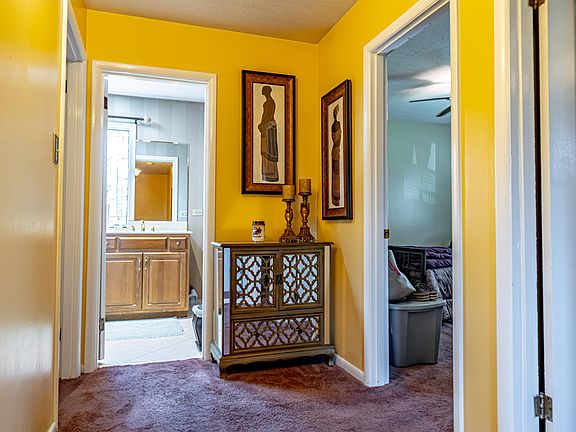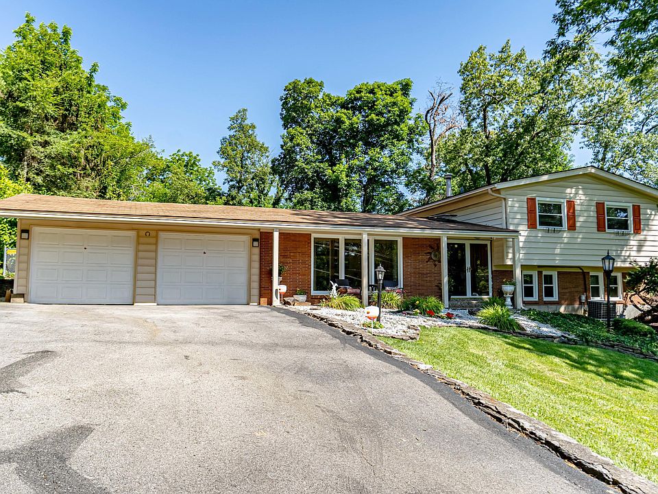 Stunning Tri level on private almost acre lot! Spacious and updated! 4 beds, 2 full baths, large 2.5 car garage with 2 front facing garage doors and one rear facing garage door. Large Driveway with plenty of parking spaces for family and friends. Covered front porch leads to Foyer , lots of sunlight from large windows and 3 remote operated skylights that open. First level offers large living room with hardwood floors that extend to the dining area. Spacious kitchen with updated cabinets and newer stainless steel type appliances. Cozy living room on lower level with gas fireplace, full bath, laundry , utility room and 4th bedroom that has been converted to a large walk in closet. Upstairs offers 3 spacious bedrooms, full bath and large master suite with private balcony. Saved the best for last! Absolutely beautiful park like setting rear yard, with deck, patio, 2 outbuildings 16x12 and 10x6, larger outbuilding has skylight, electric, a/c unit that seller used as an office. Central Vac recently updated, replacement windows. Great place to entertain lots of family and friends, located on a quiet dead end street, peaceful, and private. Truly a gorgeous setting!