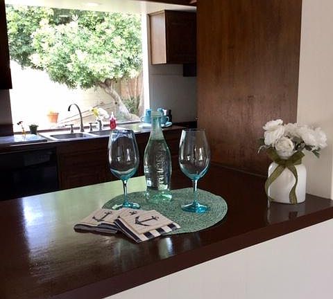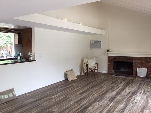 Step inside this open concept home featuring vaulted ceilings, lots of light, a large kitchen with restained cabinets, 2 years new cooktop, new tile floor & access to backyard. You will feel like you are home with new floors, ceiling fans, fresh paint throughout, ample storage & a spacious backyard with over sized patio & firepit? This home also features refreshed bathroom with granite, & an expansive living room with fireplace & architectural detail. The master has an en-suite bath + 2 additional bedrooms are full of light. Dining room is separate but open to the kitchen, living & backyard. There's also a 2 car garage and air conditioner. Owner provides gardener and will consider an animal with an additional security deposit.