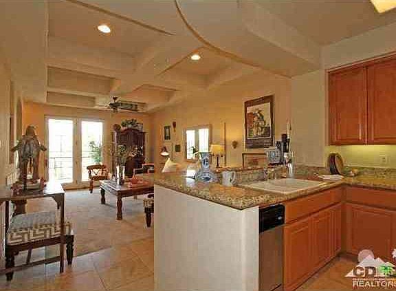 Welcome to beautiful Villa Portofino. Villa Portofino is a 55 and over gated community located on Country Club Dr., just west of Portola. This like new 1 bed, 1 bath second floor condo features: Travertine floors in the kitchen, living area, bath and entry, Granite counters, wood shutters, coffered high ceilings, stainless steel appliances. A large covered patio is accessible from the living room and bedroom , and had has a large storage room. HOA dues include, water, cable, internet, insurance, exterior maintenance and clubhouse privileges. Your clubhouse amenities include: dining at the Bistro and Formal Dining room with home meal delivery if so desired, private dining room for parties, a fully equipped gym, game room, card room, library, movie theater with free biweekly movies, pool, spa, yoga/dance studio with complimentary classes. All information contained herein is deemed accurate and reliable but should be verified.