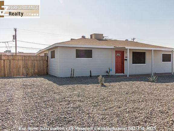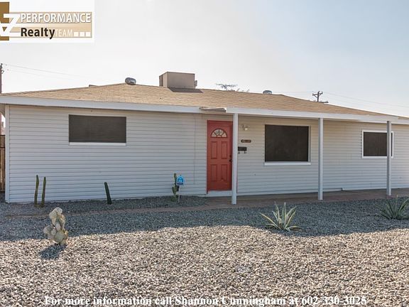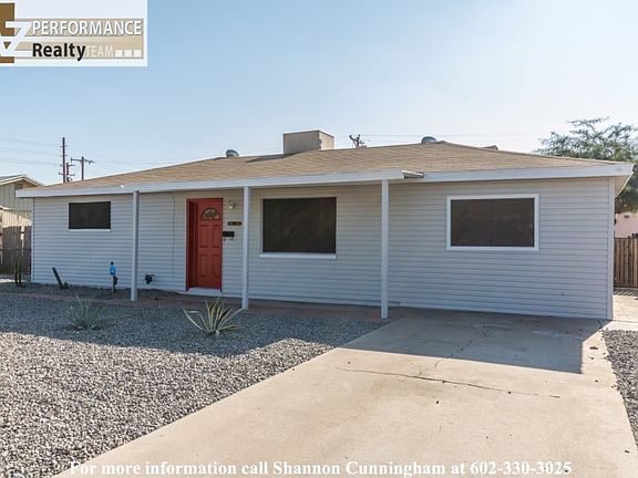 Beautiful single level home in Phoenix. Upgraded flooring and custom color palette throughout. Living room has media niche. Eat in kitchen is complete with a plethora of cabinets, ample counter space, and stainless steel appliances. Bedrooms have plush carpeting and ceiling fans. Full bathroom with single sink vanity. Backyard features a covered patio with endless room for your dream designs. This home is sure to go quick, so come see it today!
