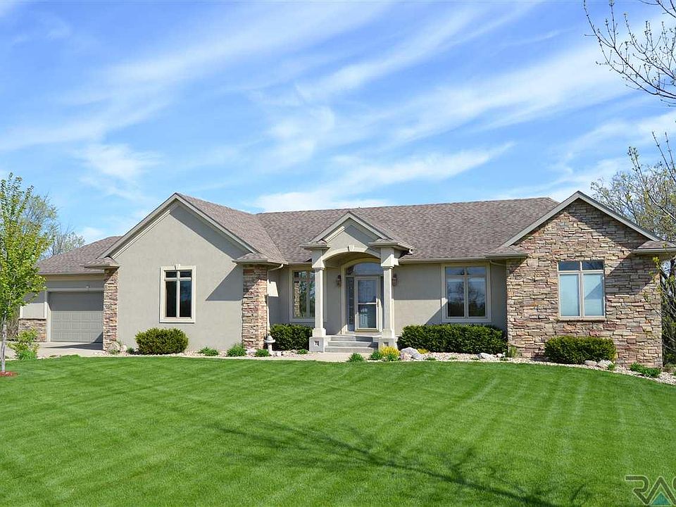 Absolutely stunning! You'll love everything this 5+ bdrm home offers. Not to mention the one-of-a-kind setting w/panoramic views of the Sioux River Valley & Spring Creek Golf Course (future Good Earth State Park). Enjoy indoor or outdoor entertaining in this gorgeous home! Great room features 9' ceilings, FP, open design & incredible views of the Sioux River & wildlife. Custom hickory cabinets & floors highlight the kitchen w/center island & pantry. There's also a semi formal dining area w/wood flrs, bay windows & spectacular views! The LL family room offers a walkout to a private paver patio, 9' ceilings, cozy FP & room for a game table. Also pre-plumbed for a future wet bar. Master suite has 7' tiled walkin shower, walkin closet & dbl vanity. 2nd bdrm offers vaults & dbl closet. There's also a den (6th bdrm?) w/french doors & golf course view! Bedroom suite w/full bath, walkin closet, + 2 additional bdrms in LL. Huge garage w/water,drain, & Storage. No yard sign at property.