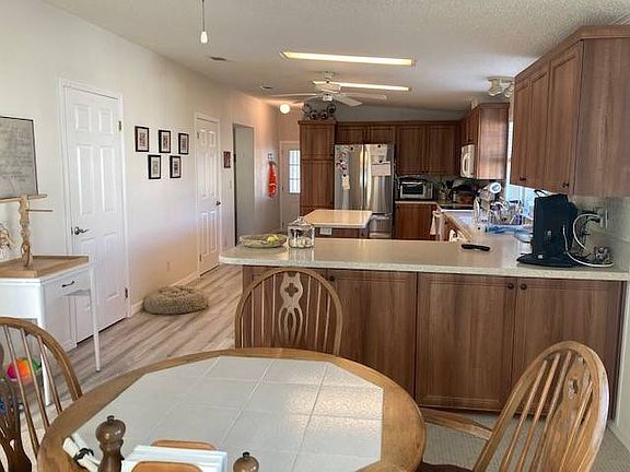Feast your eyes on this over 2000 square foot home in pristine 55+ Punta Gorda gated community. Rarely available massive triple wide home featuring metal roof, custom kitchen with pull out cabinet shelving, spacious eating area in kitchen with separate formal dining, huge 2 room outdoor storage/workshop, and 25'x14 air conditioned lanai. New owner will also enjoy Corian countertop Culligan water system, brand new driveway, nearly new air conditioning and full laundry room. Oh-did I mention massive! See this one before it's long gone.