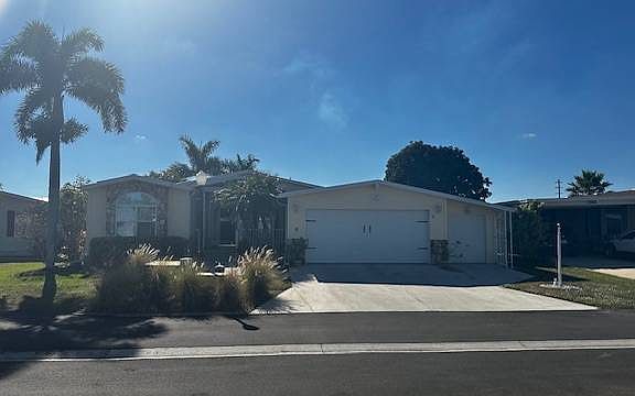 Spacious 2,000 sq. ft. three-unit open-concept mobile home in a peaceful 55+ Florida community - 2 bedrooms, 2 full baths, fully furnished office and a light-filled living area that flows effortlessly into the modern kitchen, perfect for entertaining. Relax with serene water views from the private screened-in patio as well as the large lanai that boasts a queen murphy bed for extra guests. This home comes fully furnished so all you have to do is walk in and enjoy! The beautiful well-maintained residence also includes architectural upgrades, a covered front porch with porch swing, a two-car garage with a separate workshop area, plus an additional enclosed garage space for your golf cart. Enjoy peace of mind knowing the roof is less than 5 yrs. old, as well as the AC, PLUS A 10 YR. WARRANTY! Rest easy with the low-maintenance landscaping and single-level living designed for comfort and convenience in a friendly, active community.