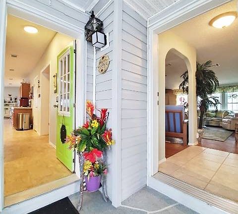 "Triple"! the room in this 2001 Triple Wide "Partially Furnished" Jacobsen Model! Your own "Pet" perimeter across the street is your Front Wooded View! "WaterView" in back all three sides! Approx. 2200 sq. ft. Two Bedroom Plus Office/Den & Two Baths! "Only Triple in the community with finished "Lanai" with HVAC done at time of install." Color coordinated "Water Resistant" Vinyl Flooring thru the entire Home. Double Carport 4+ Cars with 2 entry Shed 71/2 x 15 with built-in Workbench. Driveway sealed w/accent Pavers. Double door Foyer. Laundry inside. All Appliances: Refrigerator 2019, Disposal,Dishwasher,Over range Microwave, Flat Top Range Plus Washer & Dryer included in Sale. A/C: 2017, Roof: 2010, Hot Water Heater: 2007. Tiled entry into Living Room Decorative Archway. Three Bay windows.Window Treatments convey. Guest Bath low profile Walk-In Shower. Handi-capable. Plus Linen storage. Den/Office chair rail "Wainscoting". Storage Cabinets & French Door Entry. Guest Bedroom will accommodate King Grouping w/double closet. Open Master Bedroom w/Walk-In Closet. Master Bath has Walk-In Shower, 5 Linen Closet Storage Cabinets Plus Dual Vanities & Dual Mirrors Plus under counter storage! "Lake Room" or "Finished Lanai" with 6 bay windows for your Three Sided WaterView! Kitchen has 50 ft. of Counter space w/Easy Glide Drawers & More under Counter Storage! Walk-In Pantry! Open Dining Area has 5 More Windows with an Excellent WaterView! Additional Screened "Patio" leads out your "OverSized" Lake View! Call for a Showing!