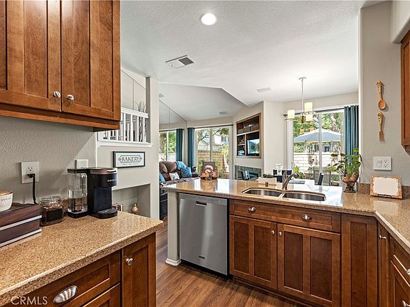 Welcome to an amazing 2 bed, 2.5 bath townhome in the heart of Valencia located at 27110 Teton Trail #85. When you walk into this beautiful home you will notice right away that it has been thoughtful remodeled with high end finishes throughout. The kitchen is a dream with quartz counter tops, stainless steel appliances, beautiful cabinetry, and plenty of counter space. The living room and dining room flow into a spacious back patio with no rear neighbors, just picturesque neighborhood views surrounded by mature trees on all sides. Both of the large bedrooms are located on the second floor and each have their own private, attached bathroom. The master suite includes vaulted ceilings, a deep walk in closet with upgraded organization system, dual sinks in the master bath with an updated vanity. There is an attached two car garage with plenty of cabinets for storage and your own private washer and dryer. Additional upgrades include dual pane windows and sliding doors, window coverings on all windows, smart lighting throughout, surround sound, and new flooring in each room of the house. Every detail has already been completely upgraded so you can move right in and enjoy this wonderful home! Excellent location within the Montana community within just steps of the HOA pool and spa where you can cool off during these hot summer days. Centrally located to everything Valencia has to offer including Bridgeport, the shops and restaurants in the Bridgeport Marketplace, Trader Joe’s, and the paseos that will take you throughout the Northbridge neighborhood. You do not want to miss out on this!