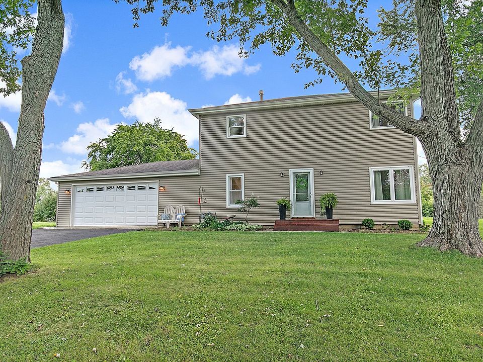 Rare opportunity to own a beautiful large corner lot in unincorporated Barrington just minutes from downtown shopping, restaurants, and the train station. Nestled on .69 acres in a quiet neighborhood, this stunning property has a stone fire pit, large mature trees as well as various fruit trees. This spacious double lot is a homesteaders dream with plenty of space for large gardens and the potential for backyard chickens! The cozy two story farmhouse has been recently updated with fresh paint throughout, newer countertops, refinished hardwood floors, newer carpeting and brand new central air, furnace and hot water heater. Roof and siding replaced in 2012. This 4 bedroom, 2 full bath home features an abundance of natural light complete with large picture windows overlooking this stunning property. A large primary suite features a corner wood burning fireplace and an attached bathroom with a large jetted tub. A large unfinished basement includes a spacious laundry room and has plenty of room for storage or even an in-home workshop! This home features an attached two car garage as well as a large detached 1880's hay barn that has been converted into a garage with an abundance of storage. Don't miss out on this opportunity to own a large lot in esteemed Barrington at an unbeatable price point!