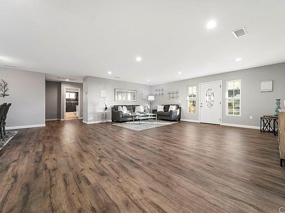 Welcome home to the highly sought after and active adult 55+ community of SCCA in the heart of Menifee. Upon arrival you will notice the low maintenance landscaping, freshly painted exterior, new windows and upgraded front entry door. This stunning home features an open concept floor plan with all new laminate flooring, neutral fresh paint throughout and an abundance of light. The spacious family room and dining room are open to a brand new kitchen featuring upgraded cabinetry, quartz counter tops, stainless steel appliances and a large island. Step through the wide hallway to your master bedroom with a unique feature of a large walk-in closet as well as an additional mirrored closet for extra storage. The master en-suite has a roll-in shower for ease of access with designer touches all around. There is also a nearby additional secondary bedroom and remodeled bathroom. An office/craft room with a built-in desk is located right off the kitchen and grants access to a very large laundry room with ample storage opportunities. No expense has been spared in upgrading and remodeling every possible feature in this home from a brand new HVAC system, wide open hallways to energy efficient LED lighting. Situated on a large flat lot with an attached and finished 2 car garage, the serene back yard has a wide patio cover for shade and ultimate relaxation with mature fruit trees. Low HOA fees with many amenities that include a club house, swimming pool and golf course.