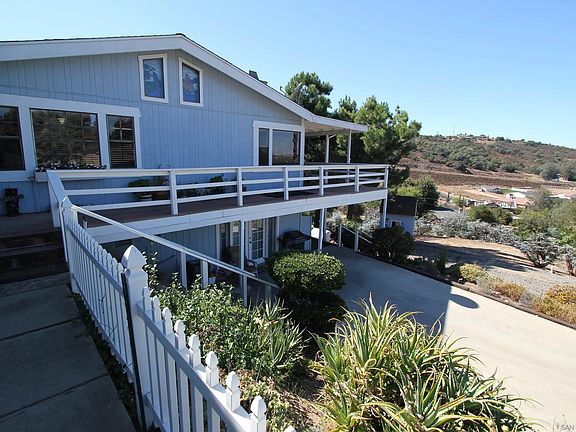 The perfect combination of off the grid living meets a convenient and excellent location sprawling across 2.57 acres. This amazing property includes 180 foot-deep water well, paid-off solar system, brand new roof, 500 gallon propane tank, and separate 800 square foot workshop/garage with electricity and running water. The main home consists of 3 beds and 2.5 baths with attached 2 car garage, central air, skylights, wood-burning fireplace, country kitchen, walk-in-closet in master bedroom and large home office with en suite bathroom. Nearly 600 square feet of deck wraps around the main house to enjoy the stunning valley view. Also included is a 720 square foot permitted basement conversion currently being used as a separate living quarter with private entrance. Outdoor living area includes hot tub and beautiful baby blue and silver dollar eucalyptus abound the property. Well water irrigation already setup around the majority of property for the eucalytpus; however it could be converted to grow food and/or water animals. NO Mello Roos, NO monthly fees. Downtown Escondido as well as Valley View, Harrah's, and Pauma Casinos are all a 10-20 minute drive from the property.