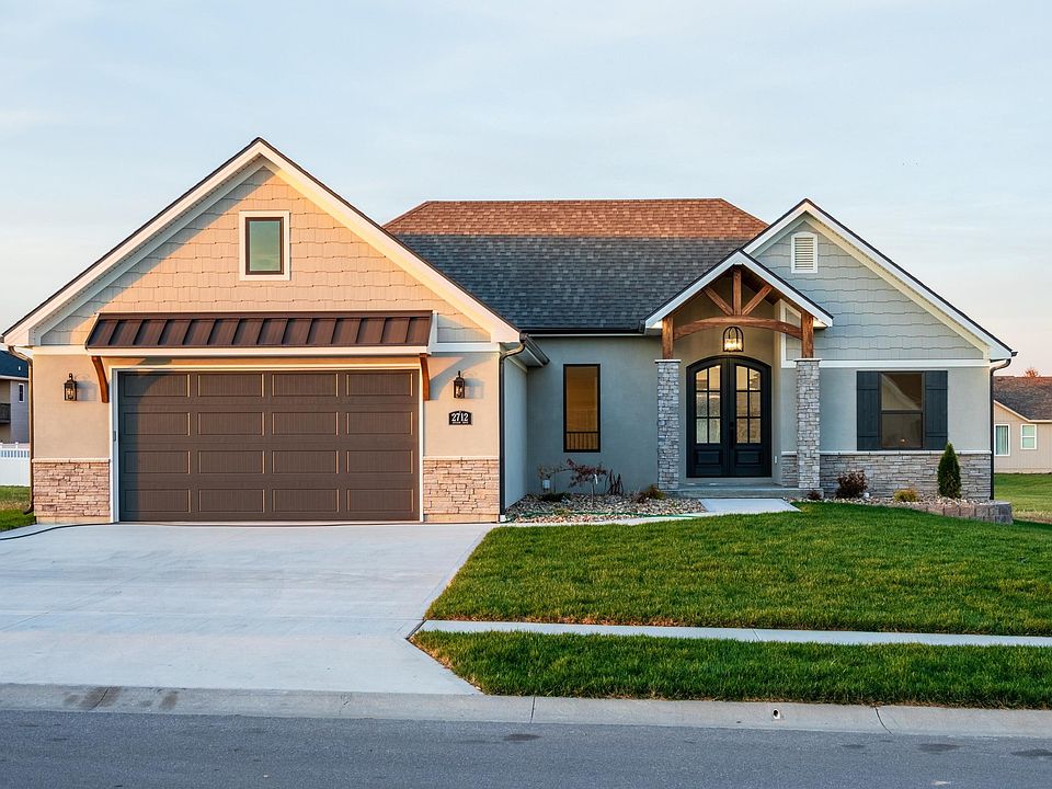 This 5 bedroom, 3 bath home is new construction with wow factor starting at the rustic front entrance with double doors, leading into open living room with shiplap fireplace wall and built ins on each side and engineered hardwood floors. Split bedroom floor plan. Bright white kitchen leads to the covered patio. Bonus space in the basement with built in bar open to family room and rec area. Not far from the Katy Trail located in the Gables. Skyline School District.