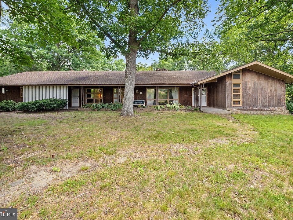 Offering one level living at its finest, this expansive Rancher nestled on a private 2.5 acre wooded lot backing to a tranquil stream is an entertainer's dream home! The living room boasts a large picture window showcasing sweeping mountain views and a stone accented, wood-burning fireplace creating a cozy and warm ambiance. Adjacent, the formal dining room offers an inviting space for gatherings, complemented by hardwood flooring that enhances its classic charm. The heart of the home lies in the large gourmet kitchen, a chef's dream equipped with Corian countertops, tile backsplash, stainless steel appliances including a Thermador six burner gas range, plus a separate wall convection oven/microwave combo. The center island/breakfast bar provides ample seating and serves as a focal point for casual dining and socializing. Entertain effortlessly in the spacious family/rec room, featuring a wood-burning stove with brick hearth and a built-in bar area. An enclosed side porch offers a retreat for enjoying the wooded views year-round. Step outside to discover your own private oasis, a fully fenced in-ground pool surrounded by a concrete patio and lush landscaping, promising endless summer enjoyment and relaxation. The expansive front porch invites you to unwind while soaking in the picturesque mountain vistas. Additional amenities include warm radiant ceiling heating, a water conditioner, ceiling fans in most rooms, and two water heaters. A large storage barn, a convenient storage shed, and an attached two car garage ensure ample space for all your recreational and storage needs. With no HOA, you'll have limitless options to make this property your own personal retreat!