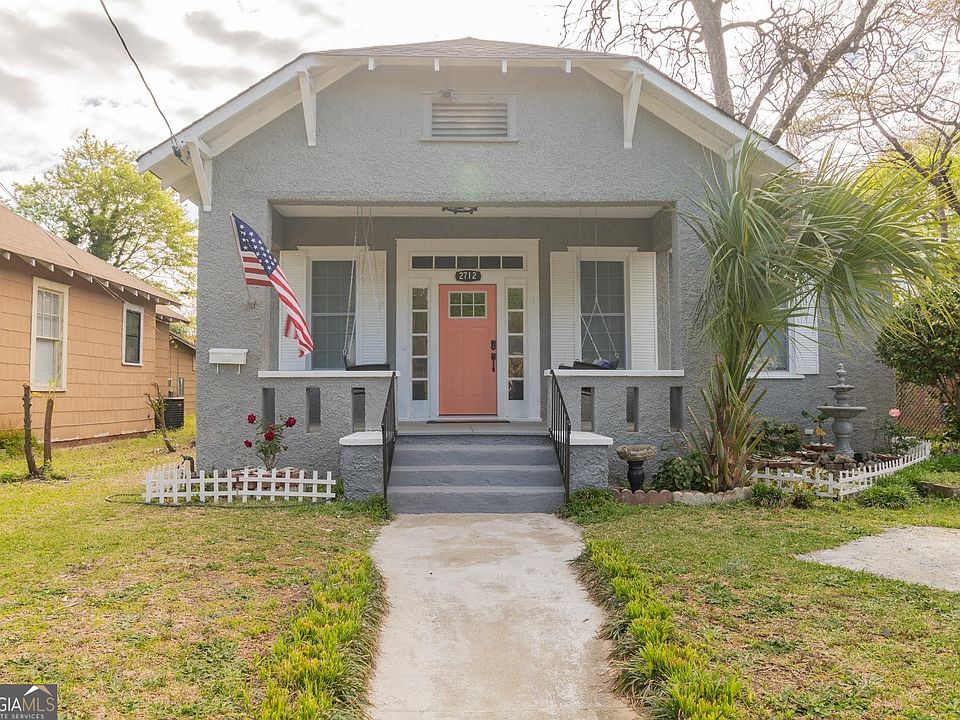 Here is your old new home in Waverly Terrace Historic District! Charming bungalow style home from 1906 with a stucco exterior that has been fully remodeled for functionality and still retains its old home charm. Welcome to the breezy and spacious front porch with new porch swings, then walk inside to a 3 bedroom 2 bathroom split plan with beautifully finished original hardwood floors. The full bathrooms have walk in showers, LED mirrors, and updated counter tops. The kitchen has a wonderful use of space with quartz countertops and original cabinetry. Includes a new refrigerator, stove, dishwasher, microwave, laundry closet for stacked units and new water heater. The home also has a new roof, new hvac system, new plumbing, and new electrical. Two areas for parking in the front, and in the back there is parking if you enter from 28th Street. Run, don't walk!