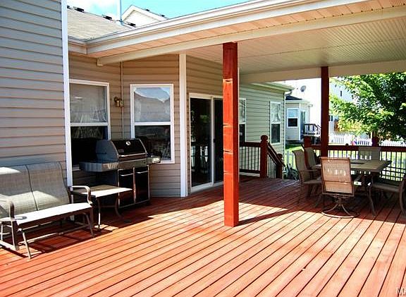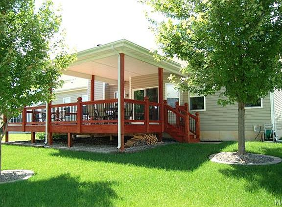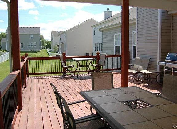 Check out this immaculate open floor plan built by the Jones Co in convenient St.Ch location! Original owner's included all their favorite upgrades- 9 foot ceilings, open great room with fireplace, separate dining, oversized garage, & main floor laundry with extra sink. Includes upgraded, stainless steel appliances with gas range, breakfast bar, and lots of cabinets adorn the kitchen that looks over a separate breakfast room. Beautiful, large, covered deck great for barbeques and get-togethers with grill and patio furniture. Main floor master BR include large walk-in closet and a master bath suite with double vanity, separate shower, and garden tub. Recently finished LL boasts an open concept area including a gorgeous oak bar as the focal point, perfect for entertaining. Price includes a new 60 wall-mounted flat screen with wired surround sound, wine cooler, refrig. Large bedroom and full bath on the LL gives comfort and privacy for overnight guests. Nothing to do but move in!!!