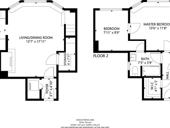- Total interior livable area: 795 sqft