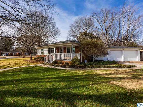 Fantastic 3 bedroom/ 1.75 Bath brick home with 2 car garage situated on a spacious corner treed lot. Prime location in town with easy access to Redstone Arsenal, I-565, and Memorial Parkway. Mostly all recent interior paint. Lots of hardwood and tile flooring. Remodeled eat in kitchen with nice cabinets, quartz counter tops, tile backsplash, recessed lighting, & pantry. Huge multi-purpose centrally heated and cooled REC room. Separate laundry room. Privacy fenced yard with 24 x 12 detached storage building. Extra deep 24 foot 2 car attached garage. Vinyl windows. Master bedroom with private bath and walk in closet. Covered front porch. Beautiful landscaping. Gas Pack HVAC.