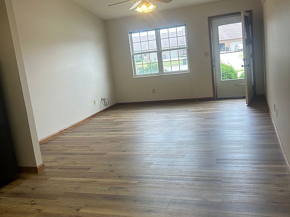 This apartment features brand new luxury vinyl plank flooring throughout. The open-concept living and dining area flows into a refreshed kitchen, providing a comfortable and functional layout. Both bedrooms offer ample closet space.