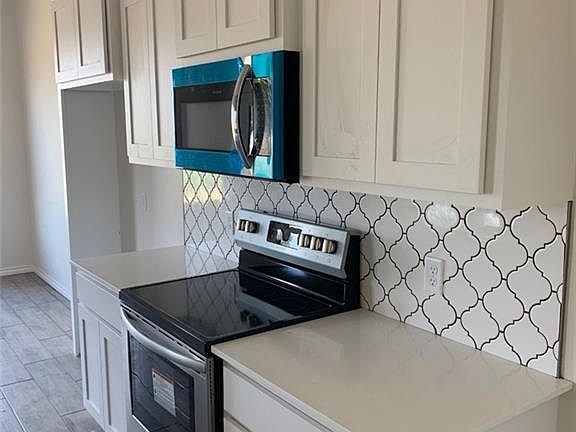 Beautiful new modern farmhouse construction on quiet cul-de-sac. Large living room has cathedral ceiling with pocket office. Spacious open kitchen has tons of natural light, custom cabinets, tile backsplash, quartz counters and stainless appliances. Master bedroom has tongue and groove wood ceiling, large master bath with double sinks, walk-in shower, soaking tub and large walk-in closet. Wood tile throughout, carpet in bedrooms. Covered patio, cedar picket fencing, sprinkler, sod. Estimated completion - 30 days or sooner.
