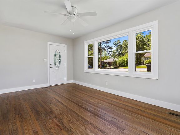 Prepare to be impressed when you walk through the front door of this charming 3-bedroom 2 bath bungalow. The soothing color scheme invites you to come in and relax. Open concept family room and kitchen make entertaining a breeze. Guests can pull up a stool at the eat in bar area and chat with the cook in the brand-new kitchen. Split bedrooms are perfect for a family or roommates. The original hardwood floors have been refinished to gorgeous perfection. LVP flooring in the kitchen, laundry and master suite blend beautifully. The master bath is a new addition with a fully tiled shower. So many possibilities in the large backyard which has a storage building. The yard is mostly fenced in and ready for your creative ideas. All new lights and fixtures give this totally renovated home new life with nearly 1300 Square feet of living enjoyment. Plenty of storage in the floored attic almost everything is new. Book your showing today because this beauty won't last long!