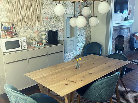 This fully remodeled 1930s Tudor Revival Duplex offers all the modern home amenities with historic charm. With an ornate built-in fireplace and original hardwood floors, enjoy a warm and cozy living and dining space. Prepare your favorite meals in the fully stocked Kitchen. Relax in a private backyard and patio. Retreat into a sunlit bedroom with a spacious king size bed. Located within the urban core of the city, enjoy being minutes from the entertainment and nightlight Downtown OKC and the plenitude of local restaurants and retail of The Plaza District, Uptown 23rd, The Asian District and The Paseo Arts District. Fully furnished and available today for Month-to-Month all bills paid leasing. Call today or text today. Fully furnished and all bills paid. Available for month to month rent.