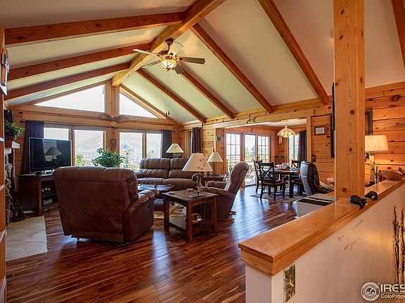 Breathtaking top of the world views of the Continental Divide. Beautifully maintained log home in Thunder Mountain. This home is immaculate, well designed, has beautiful features, end of the road privacy, and proximity to Rocky Mountain National Park. Located next to open space with frequent wildlife viewing. 3 bedrooms 3.5 bathrooms, stunning acacia wood floors, main floor living, attached two car garage, 2 decks, stunning views from every room.