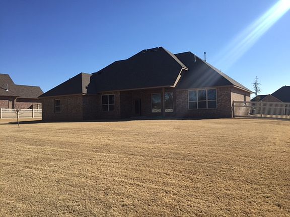 OPEN DAILY FOR YOUR VIEWING CONVENIENCE in The Woodlands at Windmill Ridge, just east of Bryan off Bradley Street. This home features 4 bedrooms, a study, 3.1/2 bathrooms, a covered patio, a 3-car garage and also includes a formal dining room. Other features are beautiful maple cabinets, granite kitchen counter tops, gas log fireplace, plantation shutters, raised ceilings to 10 feet, and designer paint colors. The bedrooms are oversized and the master has plenty of room for a king size bed. A spacious walk-in closet is part of the master suite. The home also has a security system. There are 2-50 gallon hot water heaters in the garage. The home is fully landscaped and includes an irrigation system and vinyl fence in the back yard. Contact Greg Brown Homes at 405-273-1671.
