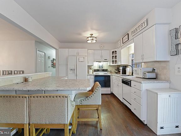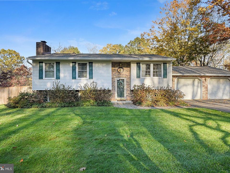 HAPPINESS IS..........Moving Right into this well maintained almost 1,700 finished sq. ft. family home on landscaped 1+ acre lot. Great location, nestled in a cul-de-sac neighborhood you'll love to come home to. Features 3 BR, 2 Full Baths, the Primary Bedroom Suite including dressing room and/or office & 3 closets. Kitchen with new backsplash, new counters, light fixtures & built in wall unit for oodles of storage. LL Family Room with brick, wood burning fireplace with heatilator, full bath and walk out to fenced backyard (new 8 ft. privacy fence). Relax or entertain on the spacious deck or covered patio and enjoy the in-ground pool. Extra Features - New Resilient Vinyl Floors, Roof 2019, Propane Heat. Here it is... Your New Happy Place!