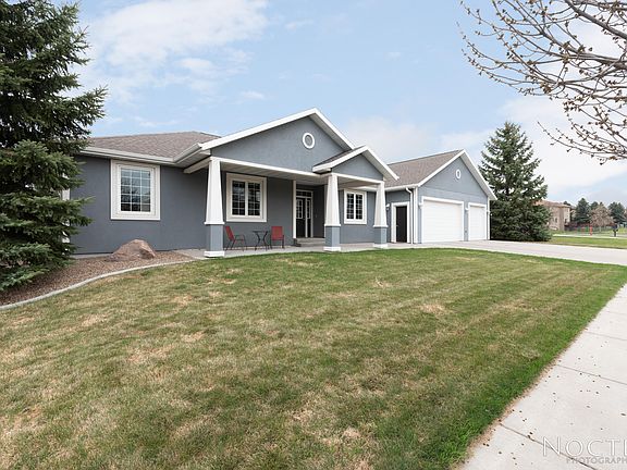 Welcome home to this wonderful sprawling ranch plan. This wide open floor-plan provides over 2,000 sq ft on the main floor, with an open kitchen and dining room design, along with 3 bedrooms on the main floor! The home is designed to have minimual steps coming from the outside into the main floor. The master suite includes a jacuzzi tub, double sinks, and large walk-in closet with its own stackable laundry inside the closet. The FINISHED BASEMENT allows for plenty of room for entertainment, along with 2 more bedrooms, a laundry room and a full bathroom. The backyard includes a mature yard with tall evergreens and a maintenance free deck. The garage is 3 wide, but large enough for 4 CARS! Located in PROMONTORY POINT in NW BISMARCK! (5 beds/4 baths)