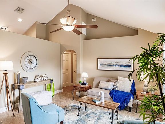 Step Happily into this Captivating Treasure - POPULAR split level Enchanted Dream Home with 3 BIG bedrooms PLUS den which walks out to back yard enclosed lanai! Open Concept Living Area. Split Bedrooms. Glorious Master Suite with Soaking Tub and Shower + Fabulous Bonus Area, which is the perfect space for Home Office, Library, Coffee Niche. Home is meticulously maintained with *INSTALLED STORM SHUTTERS* in Flood Zone X with LCEC Installed GenerLink Safe Generator Connection. Newer All Stainless Appliances. New Water Heater. Enclosed garage laundry. Exterior and Interior Freshly Painted. Excellent N/S/E/W location on quiet street just off Country Club and Veterans within walking distance to park. Luxurious Landscaping completes the package with automatic sprinklers and a HUGE lighted paved Lanai - perfect for Entertaining and Enjoying your very own Western Sunset View. Plenty of paved space for Outdoor Kitchen/Dining, Hot Tub/Spa, Kids Play Zone, Basketball, etc....Outdoor SWF Living at its best! Large Storage Shed wired for lights and power. There is SO MUCH to LOVE about this Beautiful Home - schedule your private showing today and be sure to check out the Virtual Tour!