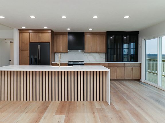 Welcome to this showstopping, fully remodeled 5-bedroom, 3-bathroom ranch home where no detail was overlooked! From the moment you step inside, you'll be wowed by the seamless open-concept design and upscale finishes throughout. The heart of the home is the chef-inspired kitchen, featuring a massive island with quartz waterfall edges, a full quartz backsplash, sleek slate black appliances, and custom cabinetry. It's the perfect blend of beauty and functionality - ideal for everyday living and entertaining alike. Enjoy the smart split floor plan with the luxurious primary suite tucked away on one side of the home, offering privacy and relaxation. Wake up to panoramic sunrise views through your private sliding glass door leading to the brand-new deck. The spa-like en suite bathroom is a true retreat with a spacious walk-in shower, custom tilework, and frameless glass doors. On the other side of the home, you'll find two generously sized bedrooms and a full bath. Downstairs, the finished basement offers a large family room, two additional bedrooms, and another full bathroom. One of the basement bedrooms features durable LVP flooring - perfect for a home gym, office, or creative space. Step outside to your huge, fully fenced backyard, complete with a brand-new deck and unobstructed views of open space for miles. It's the ideal setting for relaxing evenings, morning coffee, or weekend barbecues. Every inch of this home has been thoughtfully upgraded for luxurious, low-maintenance living. All the work has been done - just move in and enjoy!