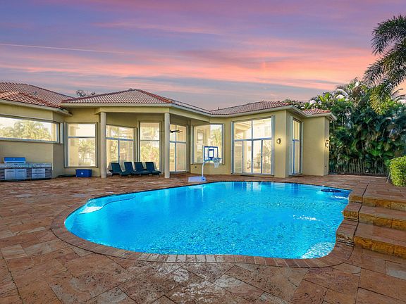 The backyard is truly a stunning paradise oasis that awaits! I can imagine enjoying a cup of coffee outside in private in the morning and then a glass of red as you watch the sun set over the lake and preserve. The custom upgraded mature palm tree landscaping is a beautiful addition to your personal paradise The free form oversized pool was recently resurfaced and ready for parties. There is a cabana bathroom as well. The home is equipped with two newer AC units, as well as accordion shutters for ease of hurricane prep.