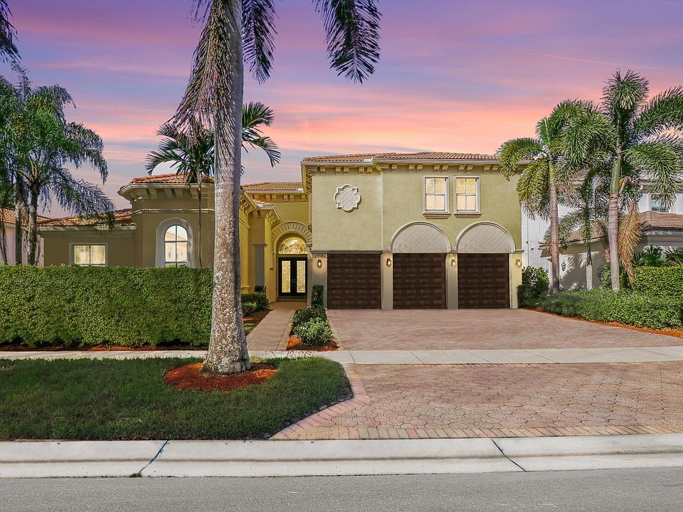 Welcome to Wellington's prestigious and premier resort style community Olympia! The rarely offered estate located in TreanorVillage, is the pride of Olympia and a flagship model only found in few estate villages offering the Grandezza Collection of homes. This one story 4922 total sq. ft. 6 bedroom plus an office (4 bedrooms on the main floor) and 4.5 bath home is essentially a one story home, with a loft above the garage with two bedrooms and a bathroom. This pool, and lakefront home sits in the perfect location with no rear neighbor, just pristine lake and preserve views galore. The entrance to the home is a true wow factor for your guests. The incredible pride of ownership throughout this estate is evident. The interior of the home is truly the perfect layout. Volume massive ceilings throughout the home give this home such a nice and light feel throughout, with a truly grand feel. The owner's suite is breathtaking with beautiful high ceilings, spacious walk in closets fitted with gorgeous built ins throughout. The en suite bathroom has dual sinks, soaking tub, and standing shower with frameless glass doors. All with direct views of your paradise backyard. The kitchen is a chef's dream with a totally open feel perfect for entertaining. Large kitchen with ample storage and solid wood cabinetry, granite, and stainless throughout. New light fixtures and ceiling fans throughout the entire home. Home has been freshly painted inside, and entire home has new light grey wood plank tile is stunning.