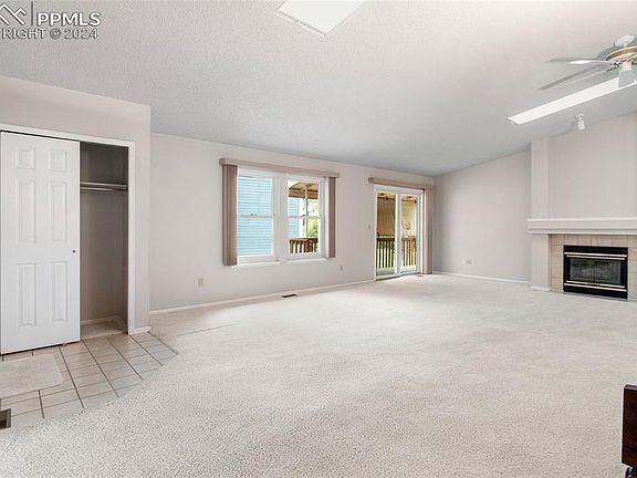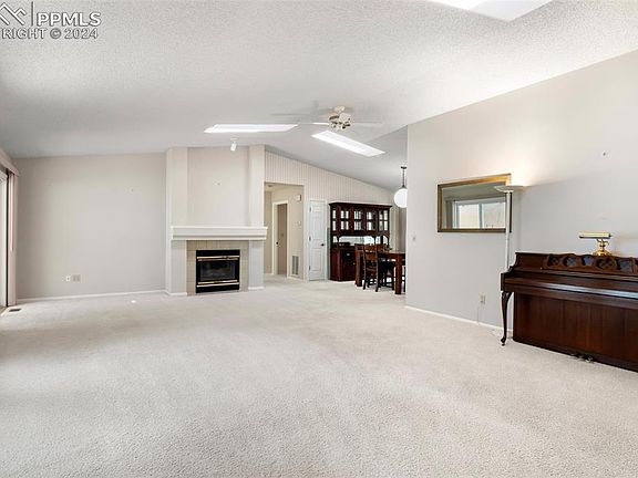 Come home to the highly desirable area of Village at Skyline. A 55+ community. Do you love to be outside in the Colorado air? This home has so much outdoor living area with multiple decks, both covered and open, that take advantage of vast Colorado Springs city views and mountain vistas. Enter inside to an open and bright family room with skylights and lots of windows. In the cooler temps, you'll love cozying up to the gas fireplace. Upgraded stainless steel appliances and granite countertops elevate this kitchen. A trash compactor and convenient island are great extras for entertaining. The adjoining dining area opens to a side covered patio perfect for your grill. The primary bedroom is so spacious, with room for a sitting area too. And the expansive walk-in closet is a thing of beauty! After a long day, enjoy a relaxing bath in the jetted tub in the ensuite bath. This primary suite is a welcome retreat. The secondary bedroom is spacious and is close to the hall bath that boasts a comfortable walk-in shower with seat. The office/study opens off the family room, with elegant French doors, and there is a closet, so you could use this for a 3rd bedroom if you need. Some of the upgrades are: Custom interior shutter window coverings, Anderson windows and patio doors, handicap friendly wide door openings and assorted grab bars, Large shower with seat in the main bath. Enjoy the walking trails and all that this community offers! Come and see the many reasons why you'll want to stay in this little piece of Heaven!